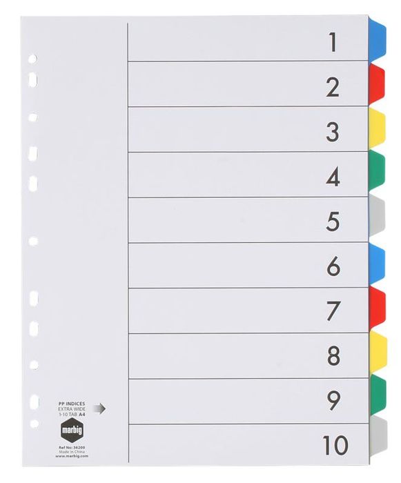 - 10 TAB CLR EX-WIDE PVC INDICES