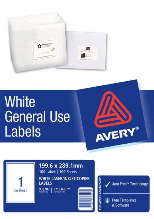 - AVERY GENERAL USE LABELS L7167 1 LABEL/SHEET
