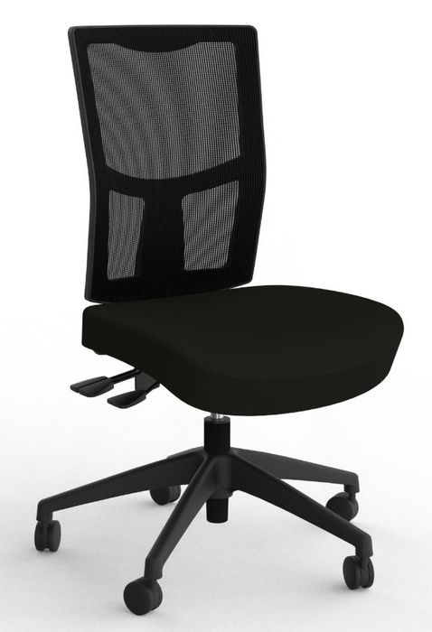Knight Group Urban chair with black nylon base and black powdercoated 3 lever mechanism. Upholstered in black Breathe fabric, with black mesh backrest. Backrest height and angle adjustable, seat height and angle adjustable. 160kg rating