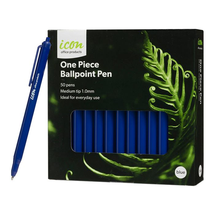- Icon One Piece Ballpoint Pen, Box 50 (blue)
