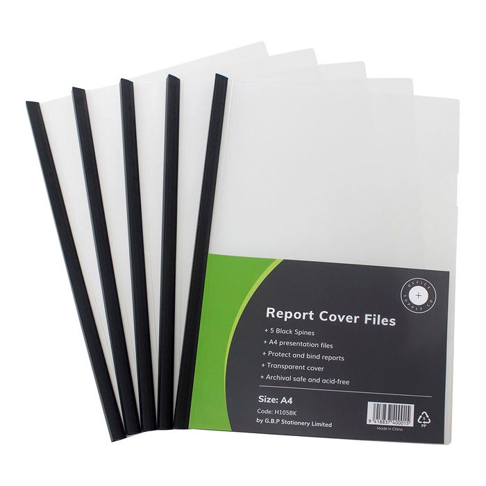 - Report Cover Clear A4 Black Spine, Pack of 5