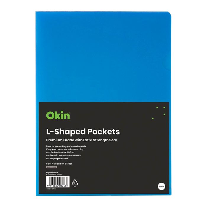 - OKIN L Shaped Pockets A4 Blue, Pack of 12